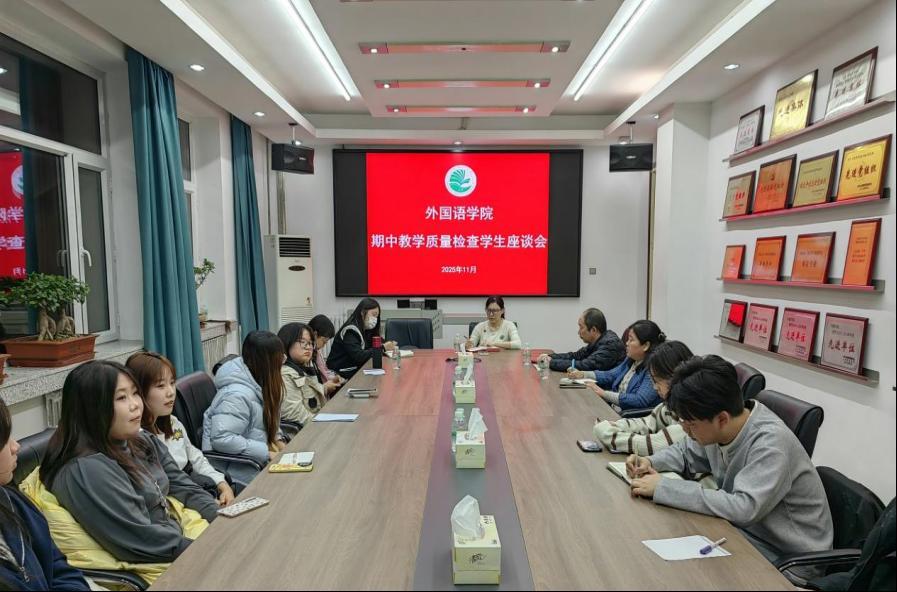 2025年11月7日,外国语学院召开2025-2026学年第一学期期中教学质量检查暨学生座谈会。会议由外国语学院副院长王莉主持,教学督导、教学秘书以及2023-2025级班长、学委参...