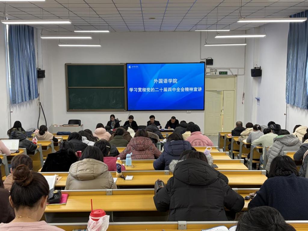 12月17日下午,外国语学院学习贯彻党的二十届四中全会精神宣讲会在外国语学院楼阶梯教室召开。党总支书记邱晓东主持并作宣讲报告,学院全体教师70余人参加会议。宣讲会...