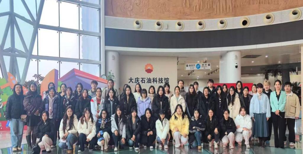 为深化商务英语专业实践教学,将思政教育与专业学习深度融合,11月26日,商务英语专业负责人卢岩、专业教师尚艳辉和王芳,带领2023级和2024级全体学生赴大庆石油科技馆开展专业见习活动,让学生在实地探访中感受石油文化,汲取精神力量。