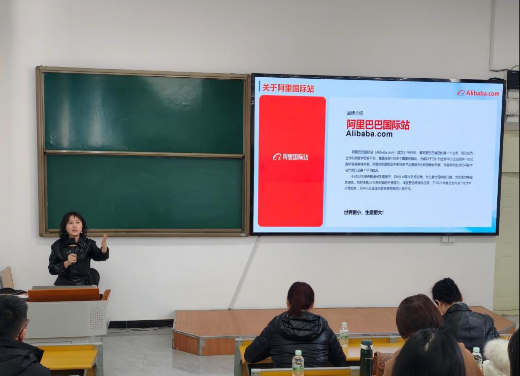 为进一步深化校企合作,拓宽学生就业渠道,培养高素质应用型跨境电商人才,3月23日下午,外国语学院成功举办“阿里巴巴跨境贸易订单班”宣讲会。学院副院长王莉、阿里国际人工智能人才孵化中心负责人范丹一行,与学院相关专业师生共同参加了此次活动。