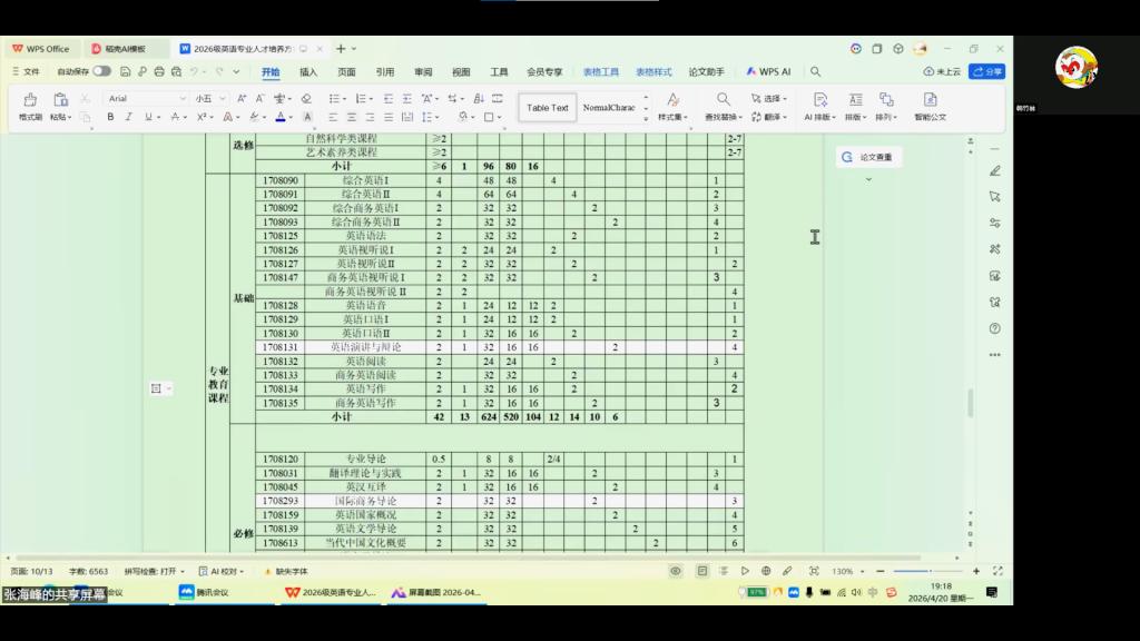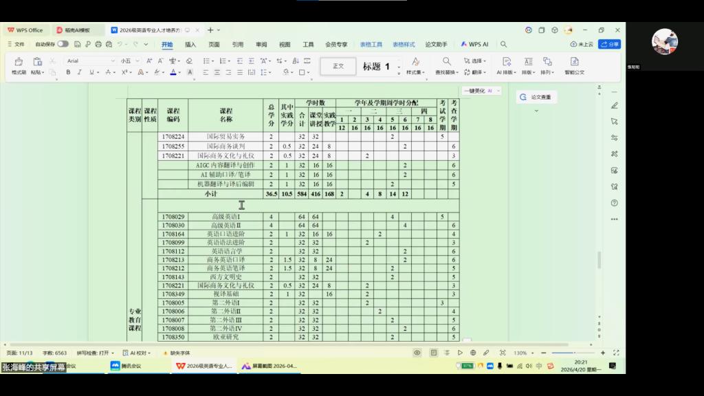 4月20日,我院英语专业通过腾讯会议平台线上召开2026级人才培养方案调研会。会议由英语专业负责人张海峰主持,英语专业全体教师参会。会议特别邀请牡丹江师范学院应用英语学院院长韩竹林教授和天津东方先科石油机械有限公司人力资源部经理张明明女士担任专家,共同为人才培养方案“把脉问诊”。
