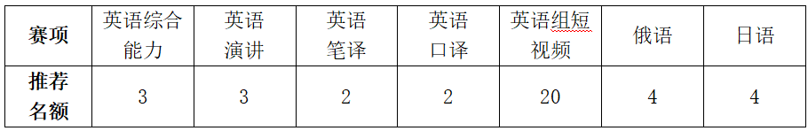 (3)比赛内容:阅读、写作、演讲、汉外笔译、汉外口译等形式。