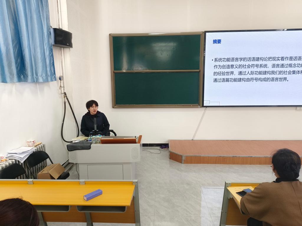 4月1日下午,外国语学院邀请黑龙江大学外国语言文学学院王天华教授,为学院师生带来一场题为《基于系统功能语言学的话语构建功能》的专题讲座。讲座在外国语学院阶梯教室举行,学院教师及学生共计100余人参加。