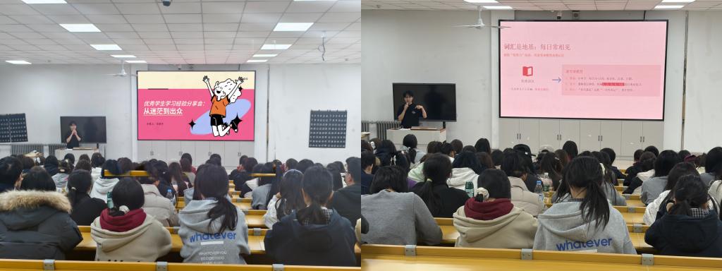 为有效提升新生学业规划能力与自主学习意识,营造积极向上、互助共进的优良学风,近日,我院在主楼举办优秀学生学习经验分享会,会议由2023级翻译专业华承宇同学担任主讲人,2025级新生参加本次活动。