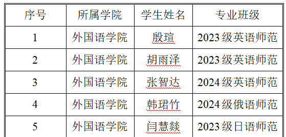 经过激烈的比赛,最终决出5名选手参加校赛,名单如下: